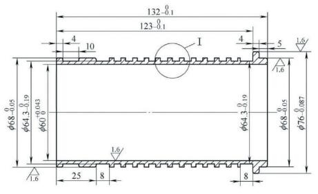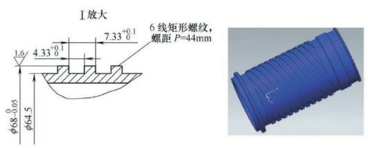 以加工图 1 所示产品外表面 6 线矩形螺纹为 例,用两种方法来说明在数控车床上是如何加工 多线螺纹的。