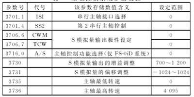 FANUC——0imateMD系统采用模拟量主轴控制方式时,除了增益调整参数3730、漂移调整3731两个参数需要计算后才能设定外,其余参数设定如表2所示。