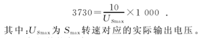 模拟量输出增益调整特性曲线如图4所示,调整增益参数可改变最大转速所对应的模拟量电压输出值,使特性曲线的斜率发生变化。本例中增益参数设定为0时,实测最大转速对应的电压为9.93V,可见特性曲线为增益过小。经计算、设定增益参数后,再次实测最大转速对应电压变为10V,增益特性变为理想特性曲线。