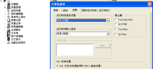 右击此计算机—>属性,在对话框中可以设置WinCC运行系统的属性。如该启动哪些程序,使用何种语言,以及哪些键将被取消激活。
