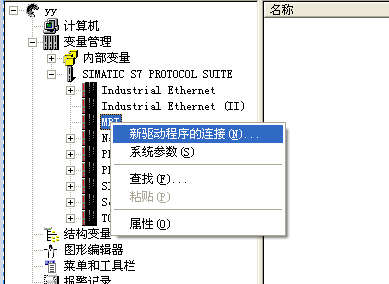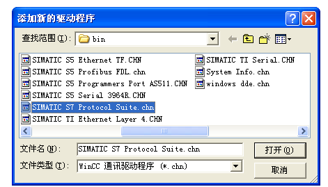 3 选择显示的驱动程序中的一个,如SIMATIC S7 协议集(所有SIMATIC S7和C7控制器中都集成了S7通信服务),单击“打开”,选择的驱动程序将出现在变量管理器下面。