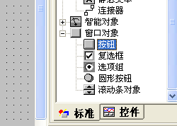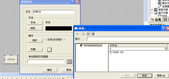 (1)在“START.PDL”中,选择最右边对象选项板中“Windows对象”->”按钮”
