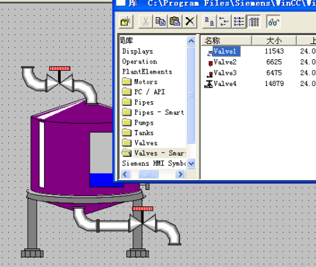 (3)画出阀门和管道。分别使用“Valves smart objects”和“Pipes smart objects”中的元件。