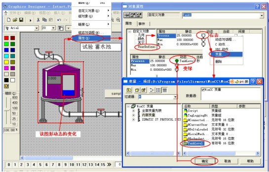 画面中的图形要动态地变化,必须将对象地某个属性与变量相关联。步骤如下: