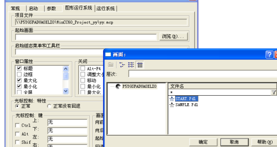 2 点击“图形运行系统”标签,在“窗口属性”中激活“标题”“最大化”“最小化”复选框。