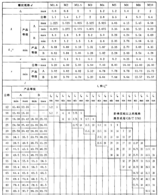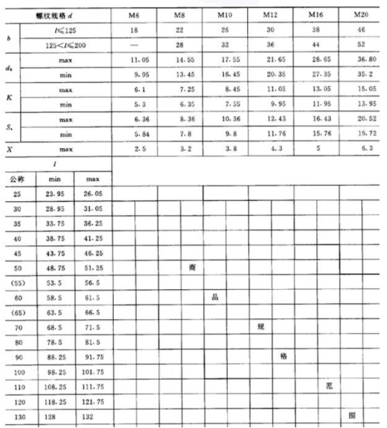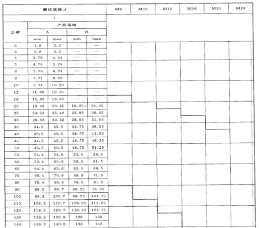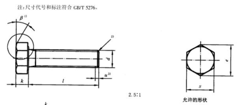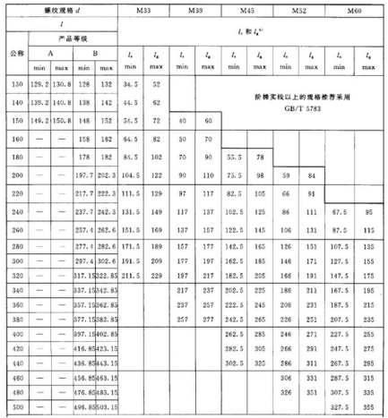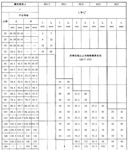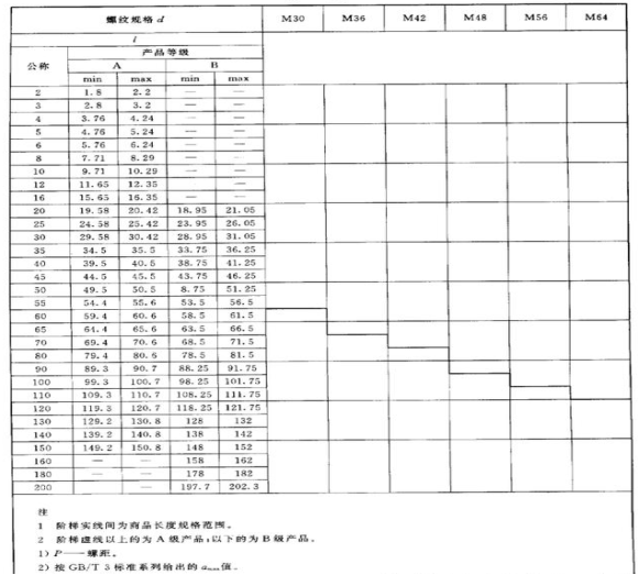 注:这种产品除制成全螺纹,并且作为商品长度规格的公称长度可达200mm外,其余与GB/T5782相同。
