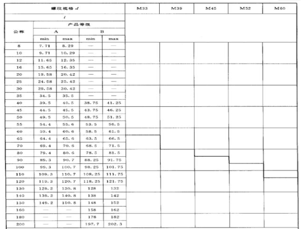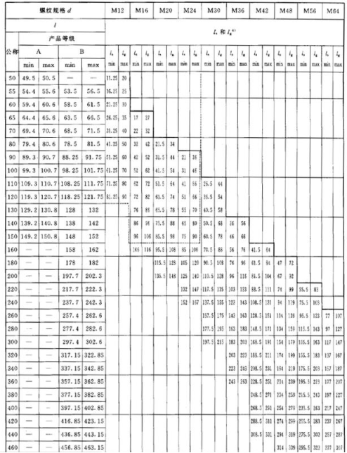 本标准规定了螺纹规格为MI.6~M64,性能等级为5.6、8.8、9.8、10.9、A2-70、A4-70、A2-50、A4-50、CU2、CU3和AL4级、产品等级为A和B级的六角头螺栓。A级用于d=1.6~24mm和l≤10d或l≤150mm(按较小值);B级用于d>24mm或l>10d或l>150mm(按较小值)的螺栓。